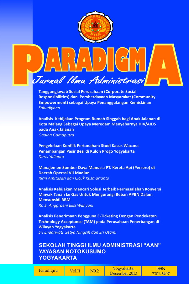 PARADIGMA : Jurnal Ilmu Administrasi yang diterbitkan Sekolah Tinggi Ilmu Administrasi "AAN" Yogyakarta. Jurnal ini terbit 2 (dua) kali dalam setahun. -